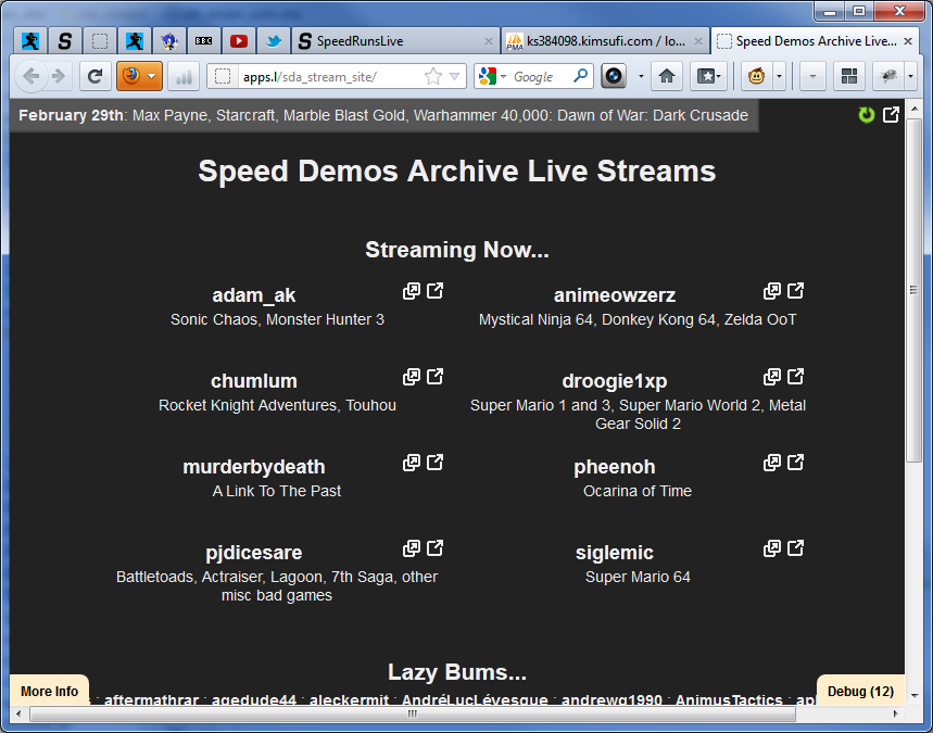 I would appreciate it if you could add me to the stream page. I started practicing for a run and I'll be streaming that a lot and I also stream other games.