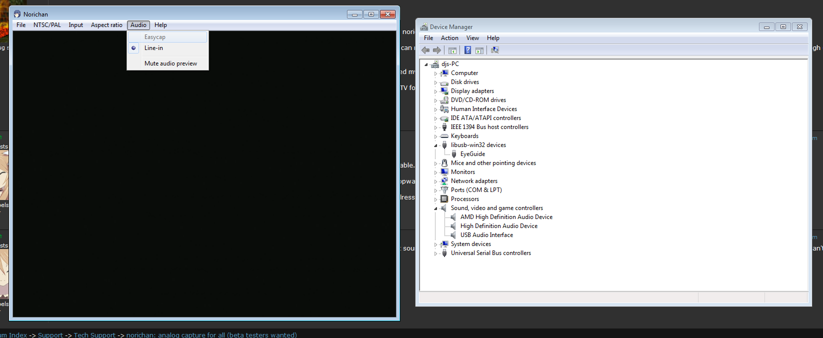 "Sorry, Norichan could not locate the EasyCap hardware attach to this computer, please connect the hardware and try again."